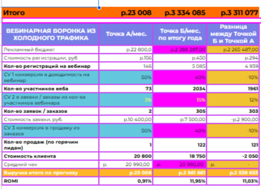 После проведения аудита делаем стратегическое годовое планирование по месяцам, кварталам с полным погружением действий с цифрами.