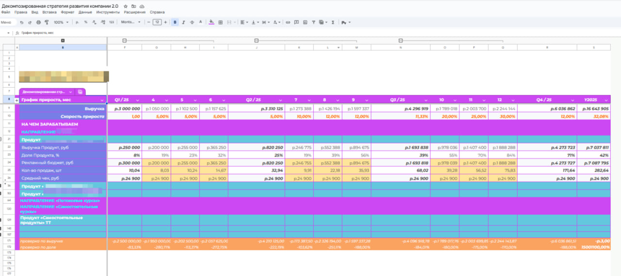 После проведения аудита делаем стратегическое годовое планирование по месяцам, кварталам с полным погружением действий с цифрами.